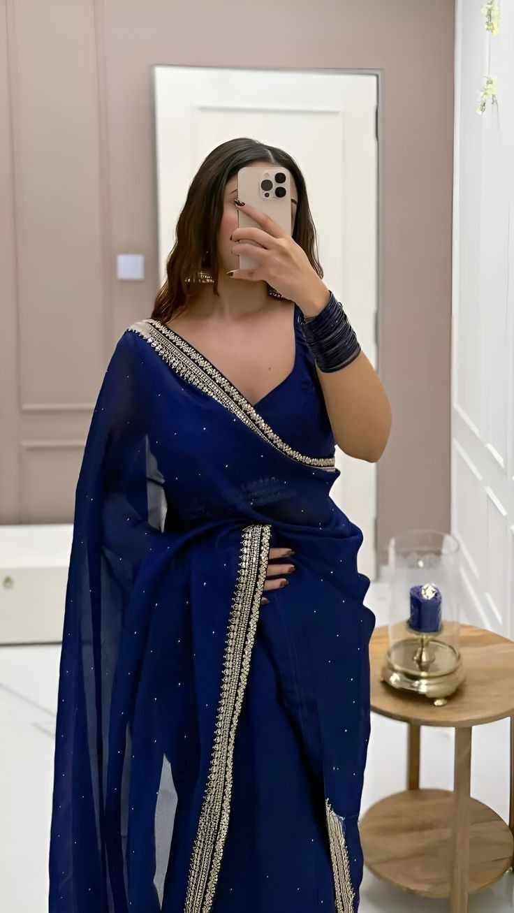 "Oh, thank the heavens for you," Ishana sighed in relief as the saree slowly began to take shape. "You always make it look so effortless. And seriously, you look incredible! That blue is just… wow."